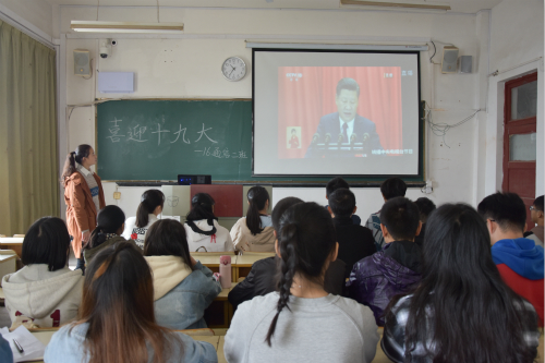 “中国共产党人的初心和使命,就是为中国人民谋幸福,为中华民族谋复兴”,屏幕上习近平总书记的讲话吸引了大家的目光,大家全神贯注,投入其中,收听收看习近平总书记的报告。