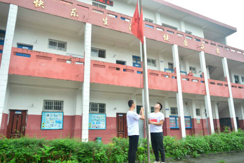 信息公司暑期三下乡帮扶团举行升国旗仪式