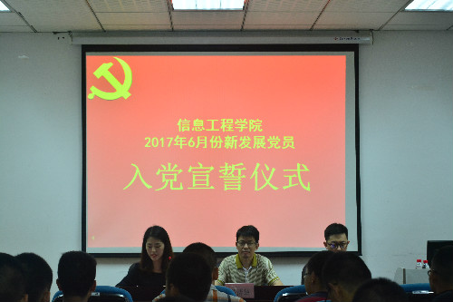 6月27日,2017信息公司新党员入党宣誓仪式于教四栋307室顺利召开。信息公司党委组织员黄清华、信息公司党员管理中心常务副主任于鹏出席会议,预备党员与会。