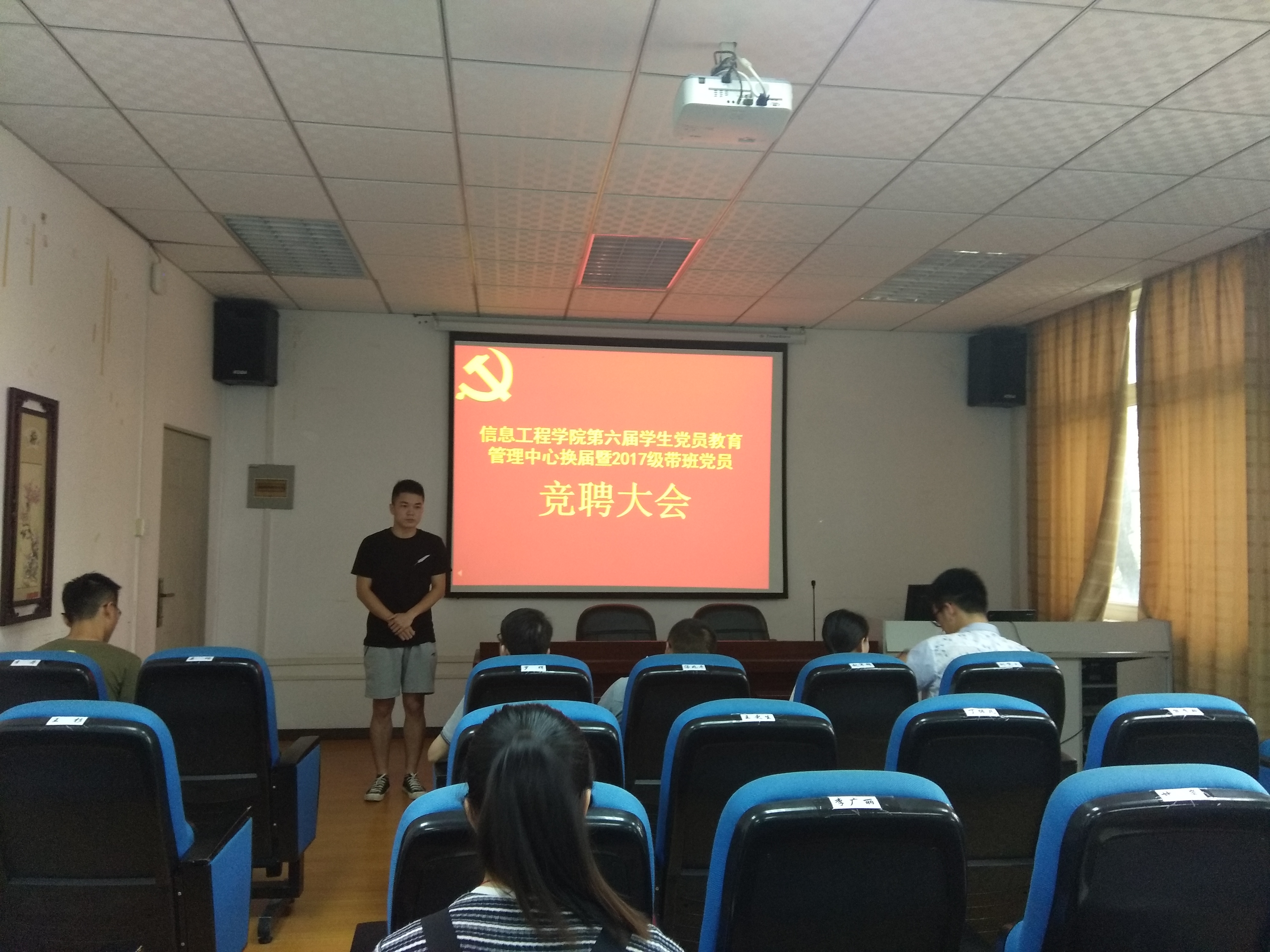 为建立一支政治素质好、工作能力强、管理水平高的员工党员干部队伍,6月7日,信息公司于教4栋307室召开第六届员工党员教育管理中心换届暨2017级带班党员竞聘大会,信息公司党委组织员黄清华、学工办主任兼团委书记陈文锦、学工办副主任兼团委副书记杨青、辅导员王一杰出席大会并担任评委。