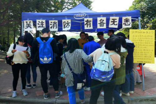 为了增强同学们的安全意识和防范意识, 10月26日,信息公司16级计算机一班在南区一食堂门口举办了主题为“消防安全、预防火灾”的有奖竞答活动。