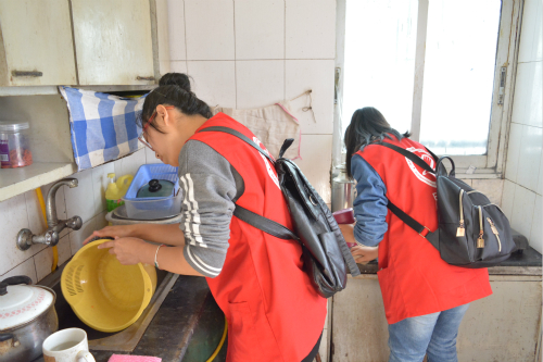扫地、洗碗、刷锅、抹桌……当看到魏奶奶家中略有狼藉,却行动不便于打扫卫生时,志愿者争先恐后,纷纷抢着干活,积极帮忙打扫庭院,整理厨房。