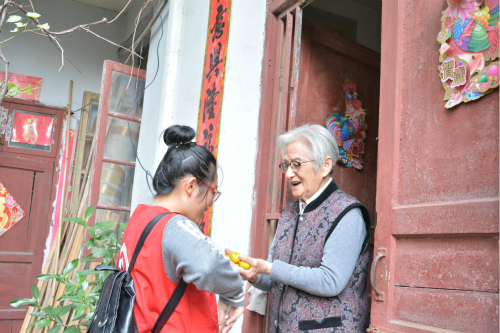 菜籽油、东北大米、香蕉、橘子……志愿者们手提“爱心粮食”,上门探望慰问老人。在抗战老兵任志和晁云清的家中,大家共享重阳之乐。“看着他们,我仿佛看见了自己远在宁夏的奶奶,我只想抱抱他们,与他们聊聊天,在我看来,这次志愿活动是非常有意义的。”信息公司17级信息二班郭凤铃深有感悟。
