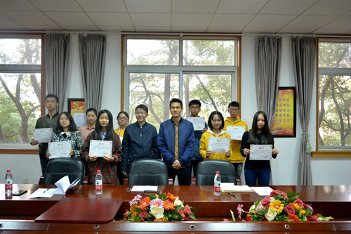 黄晓鹤和黄清华共同为本届信息公司新闻小组成员颁发聘任证书。