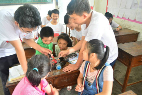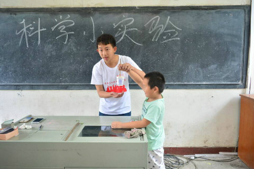 “我们准备这些简单的科学小实验和科技作品主要是为了能让小朋友直观地感受到科学的神奇奥妙,培养他们对科学技术的兴趣,起一定的启蒙作用,有几个小朋友在经过我们的趣味课堂后还说他们树立了今后要成为科学家的梦想呢。”志愿者陆星宇在采访中说道。