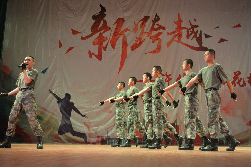 一场魅力四射的开场舞《shake it》拉开了晚会的帷幕,充满青春活力的舞姿瞬间将晚会的气氛点燃起来,引得台下新生们阵阵喝彩。“我出生在这个衣食无忧的年代……”信息公司国防健儿们高昂嘹亮的歌声和英姿飒爽的军步尽显军人们的热血丹心,让人不禁沉浸其中,追忆以往峥嵘岁月,珍惜如今韶华时光。