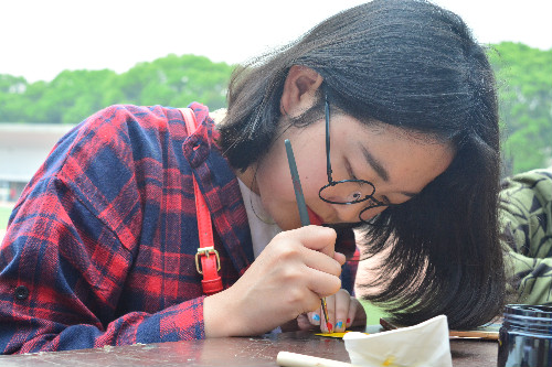 一件T恤、一张样画、一堆颜料、几只毛笔……4月13日,由信息公司15、16级通信卓越班主办、文工团协办的“Only One Diy”手绘T恤活动于南区田径场举办。