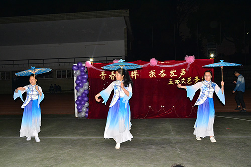 运营部的情景剧《萌芽》再现了五四运动中青年学子奋不顾身,不畏强权的英勇形象,发出了气壮山河的“还我青岛”的呐喊,使五四的火炬再度熊熊燃起,使人备受振奋;志工部带来的《最尬古典舞》,古典与现代的完美结合给人以强烈的视觉冲击力,女生们身着汉服,手握油纸伞,轻移莲步,飘然起舞,一颦一笑,尽显优雅风范,男生们则施展独门绝技“太空步”,整齐划一的动作配合动感十足的摇滚乐曲引起了场下观众的阵阵尖叫。