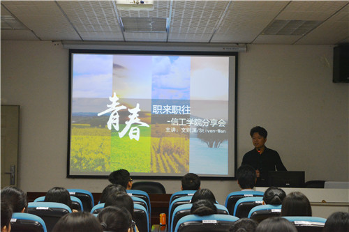 5月24日,由信息公司学术部主办的就业咨询会于学四栋307室举办。本次交流会主讲嘉宾为澳洲悉尼大学硕士学位毕业生、网易江西的投资人之一、资深人力资源经理人文则渊。