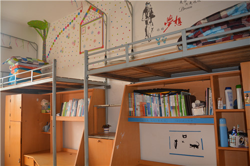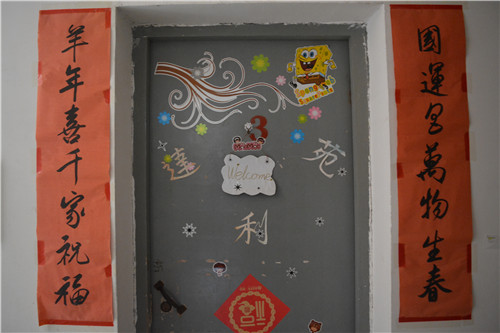 “绿竹环绕在寝室周围,青藤爬满栏杆,使人置身于清幽之中”,这是员工9栋501寝室的壁纸设计,他们将寝室贴满以绿色为主题的壁纸,清新的色彩和立体感的设计令人眼前一亮。9栋437寝室名为“等一个人咖啡”,以“每杯咖啡都有不同的口味,每个人都有不同的性格”为口号,墙面上贴满砖式壁纸,形式新颖独特。学11栋201-1寝室则以蓝色为主色调,展现女生寝室的温馨与细腻,飘逸的窗帘,可爱的墙画,处处透露着家的味道。