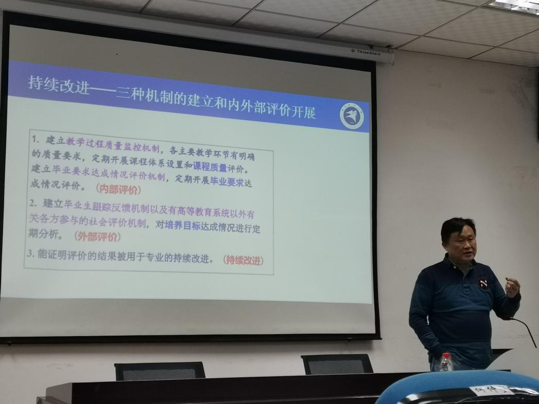 舒坚教授围绕工程教育认证工作展开了在以员工为中心、如何开展教学改革以及如何持续改进等方面进行了介绍。报告期间,还与老师们进行了热烈的交流和讨论,取得了圆满成功。