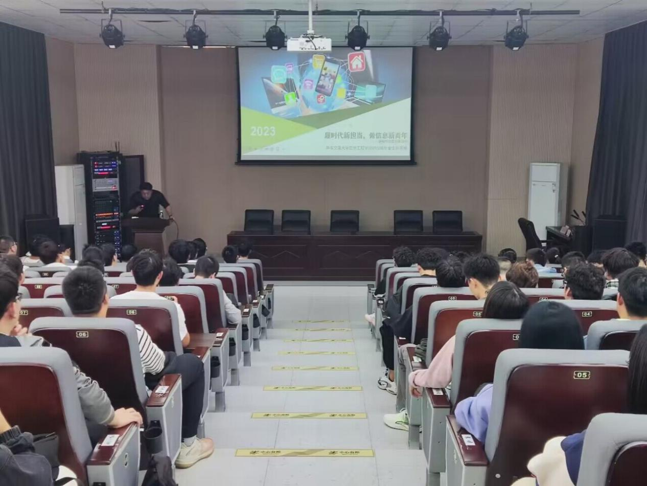 陈英博以“履时代新担当,做信息新青年”为主题,从触摸行业前沿、开辟思维蹊径、定制个人未来等三个方面进行分享,打开同学们的思路,提高同学们的就业素养。他希望同学们能从本次活动中获得新的体会与感悟,并将所学到的内容应用到实践中。他以“风光油储”海岛基站运维体系及行为分析为例,加深同学们对就业和履职的理解。此次活动让同学们的职业素养和求职能力得到了提高,从而更好地应对未来的职场竞争。此外,陈英博还提醒同学们要懂得开辟思维蹊径、定制自己的未来,从而让自己的前途更光明、更美好。