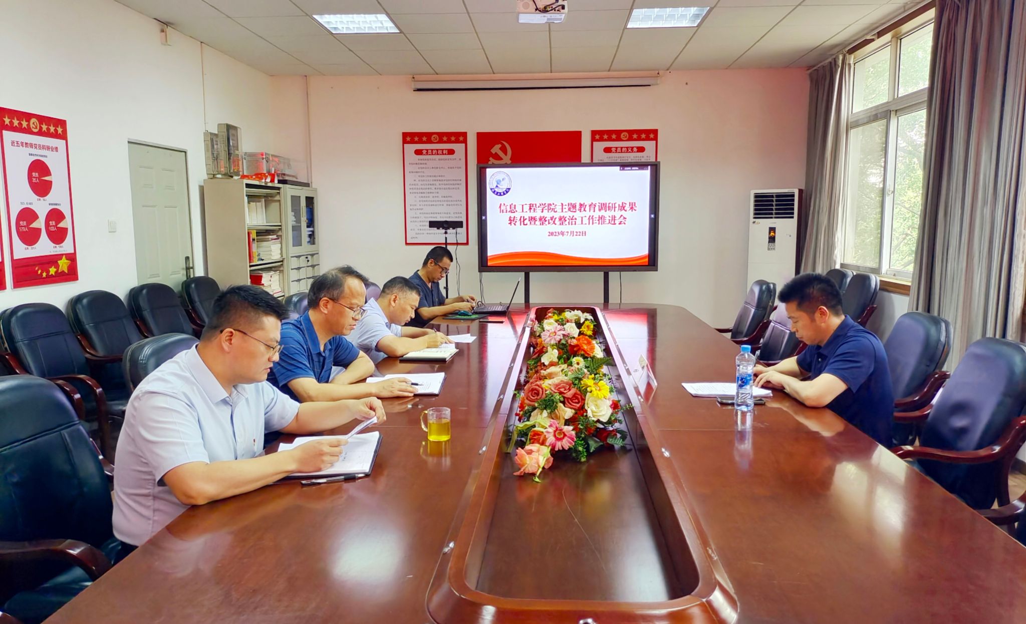 公司负责人汇报了公司主题教育调研成果转化情况、整改整治工作推进情况及暑假相关工作开展情况,公司班子成员就调研情况、整改整治等作交流发言。