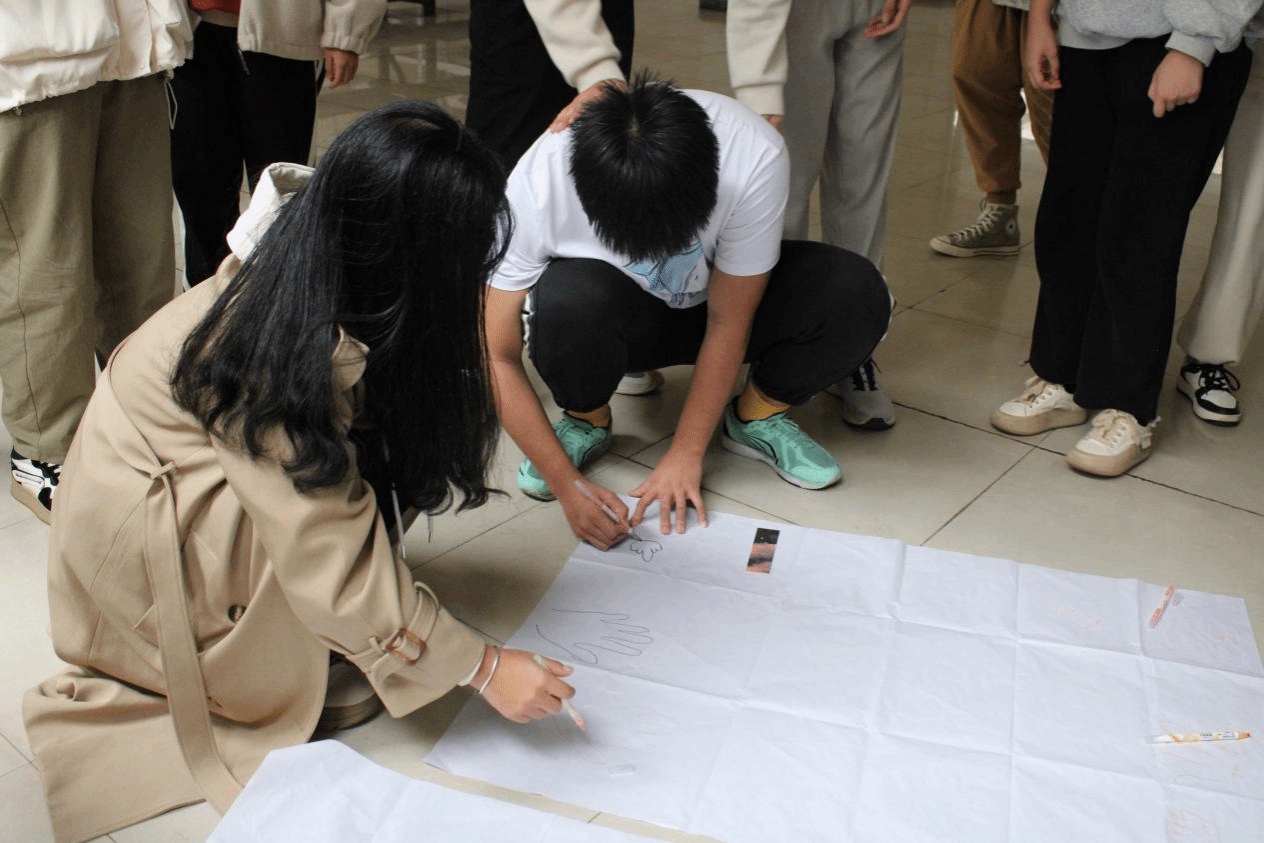 同学们以主持人为中心围成一个圆圈,在主持人的介绍中,活动开始。活动以“绕口令”为暖场小游戏,使同学们快速融入轻松愉悦的氛围当中。随后,心素会成员科普了多个心理小知识,推进了公司的心理健康教育。同学们积极参与了“007”、“联想游戏”、“贴膏药”等游戏环节,并分享了自己的幸福瞬间。现场气氛活跃,通过合作交流,同学们之间的关系更加紧密,同时也获得了积极的情绪体验。活动最后,同学们用蜡笔在纸张上画出了自己的手掌轮廓。五彩斑斓的手掌轮廓,犹如他们心中的梦想丰富多彩。这些手掌轮廓汇聚在一起,形成了一幅充满活力和希望的画卷。这不仅是对未来的美好祝愿,也是对当下生活的珍惜和感激。