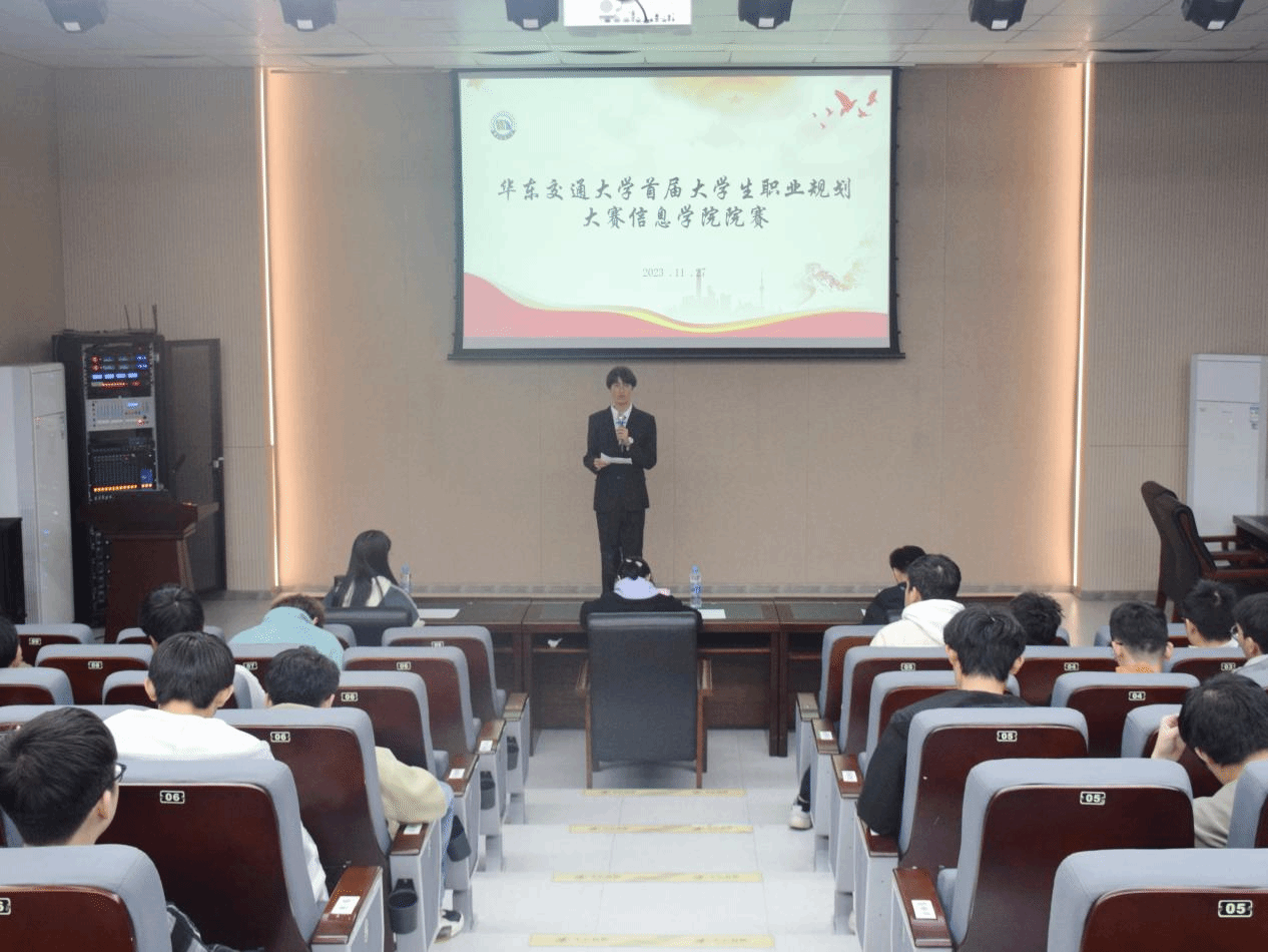 本次职业规划大赛分为成长赛道与就业赛道。比赛过程中,参赛选手们上台结合生涯发展报告进行主题陈述和展示。他们结合专业特点,从自我认知、就业环境、职业定位和评估调整等四个方面,向评委和现场观众展示了他们对个人职业规划的思考和独到见解。