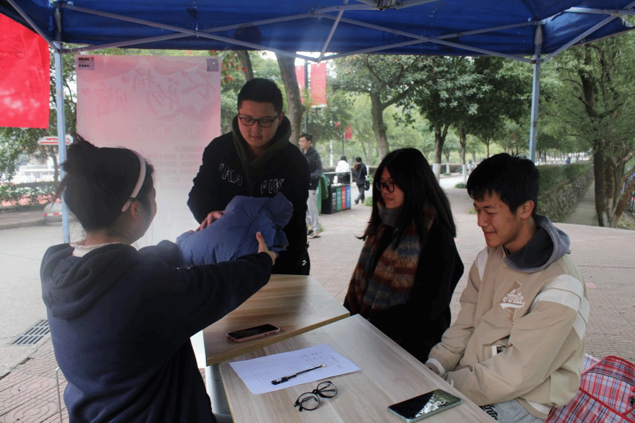 11月25日下午至26日,信息工程公司青年志愿者协会在南区一食堂对面开展旧衣物捐赠活动。