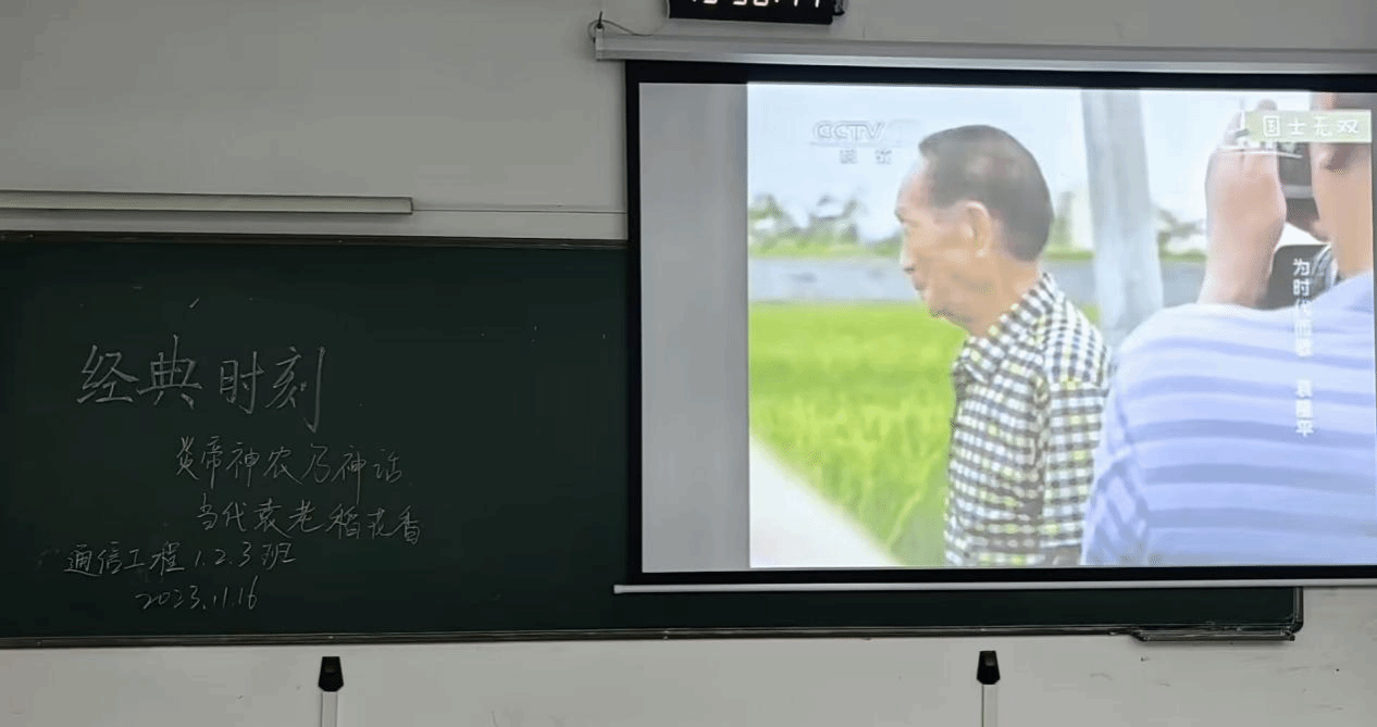 11月16日,信息公司2023级通信工程1、2、3班开展第六次“经典时刻”活动中——观看央视纪录片《为时代而歌:袁隆平》。在观影过程中,同学们深刻感受到“杂交水稻之父”袁隆平精益求精的科研精神和精忠报国的家国情怀,在这背后,也看到了他生动的、充满烟火气的生活故事。