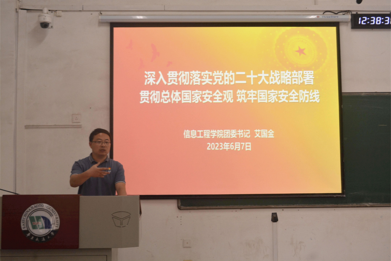 为进一步加强员工对总体国家安全观的认识,6月7日,信息公司于14栋113开展“深入贯彻落实党的二十大战略部署,贯彻总体国家安全观,筑牢国家安全防线”主题团课,院团委书记艾国金主讲。