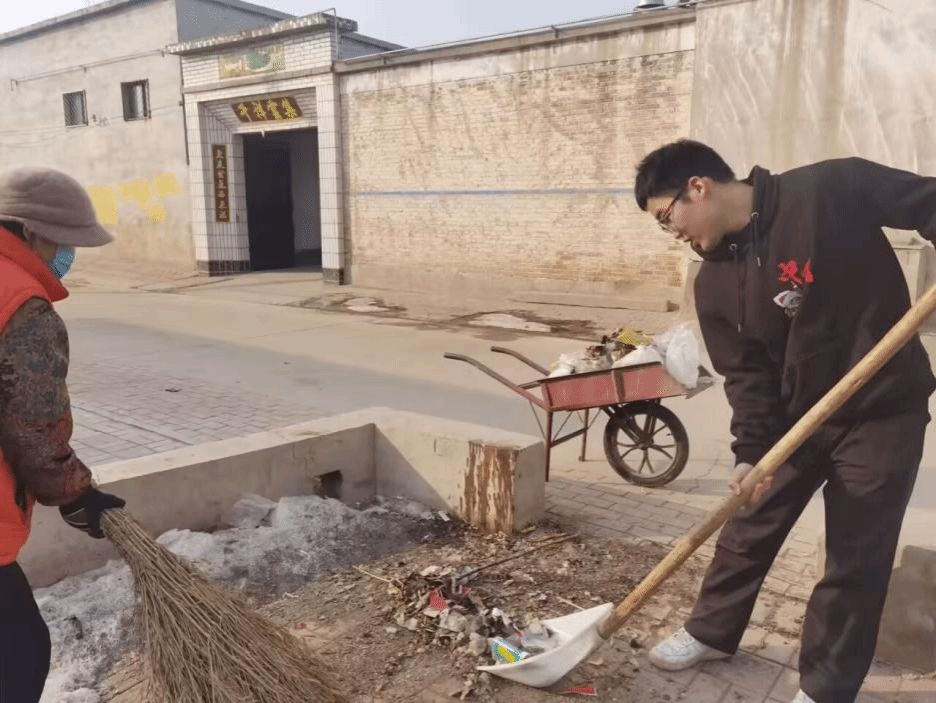 李宇豪同志参与梁村镇梁村广场积雪和垃圾清理的志愿活动