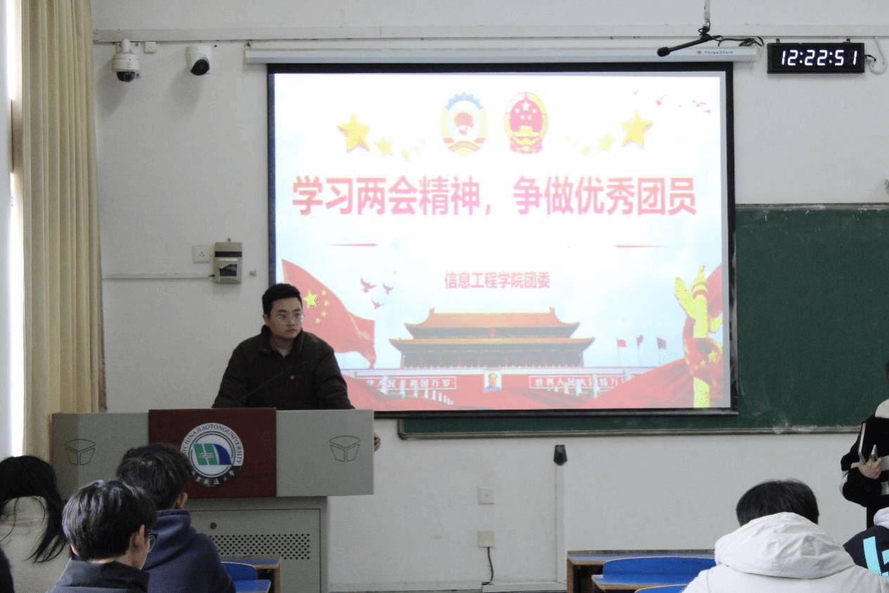 为迎接十四届全国人大二次会议和全国政协十四届二次会议,充分学习“两会精神”,3月7日,信息公司于14栋108室召开以“学习两会精神,争做优秀团干”为主题的学习活动。信息公司全体团支书参加,团委洪亚聪老师主讲。