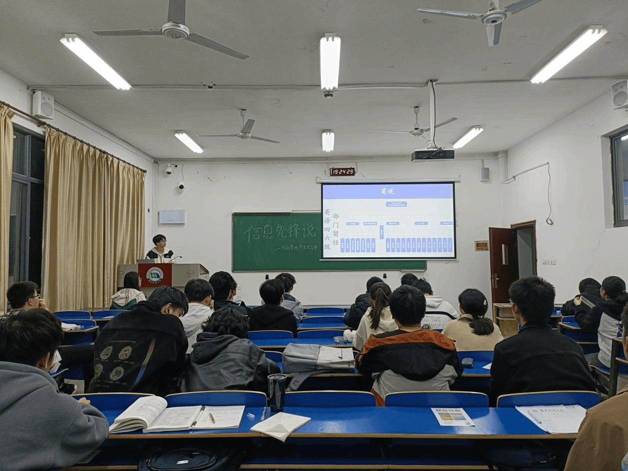 3月19日,信息工程公司举办“信息先锋说”第二十七期分享会。此次会议由创新基地员工党支部主持。支部成员董嘉乐和吴文静同志围绕“学习方法、生活技巧、科创竞赛”作分享交流。物联网2023-1班、物联网2023-2班全体同学参加分享会。