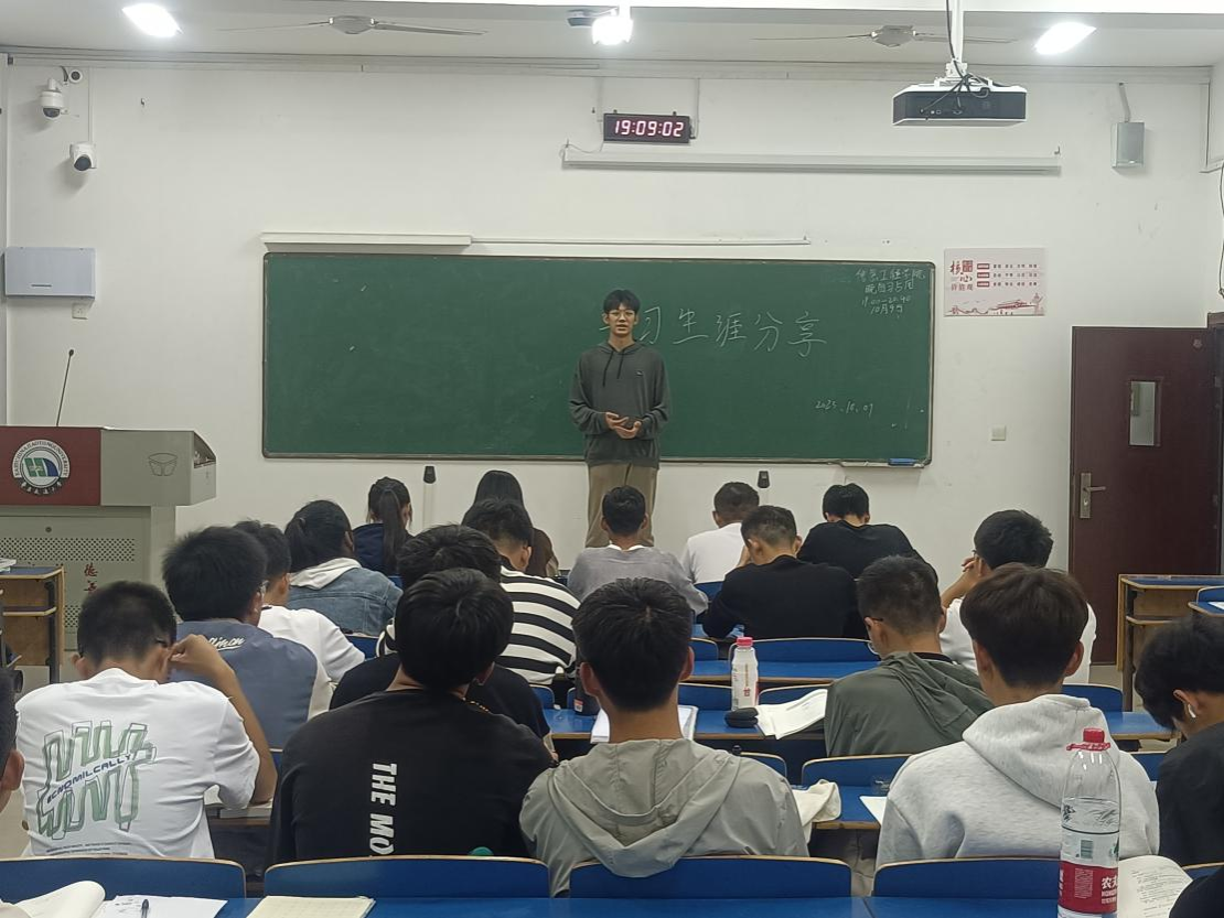 在活动中,毕业班党员同志为新生作学习生涯分享,耐心而详细介绍求职、考研、考公(事业单位)、推免、出国留学等就业去向选择的相关情况。党员同志“立标杆,做表率”,热心地为同学们分享自己的学习方法和成长路上的点点滴滴,鼓励同学们珍惜大学时光,为自己的未来奠定扎实的基础。同时针对大一的学习情况,毕业班党员们还特地强调大学英语和高等数学在专业学习及考研中的重要性。党员同志们耐心讲解难题让新生们学到了满满的干货。