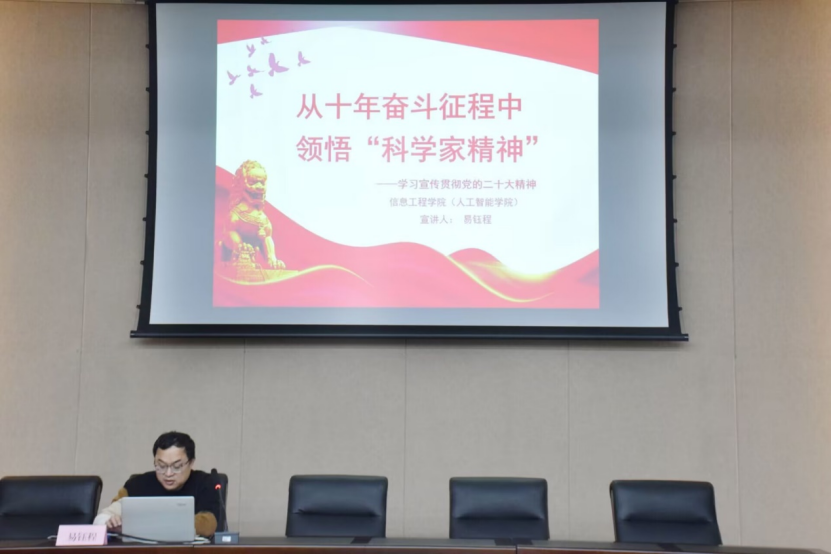 为全面深入学习宣传贯彻党的二十大精神,12月9日,信息工程公司于教5栋学术报告厅进行党的二十大精神宣讲,校博士宣讲团成员易钰程面向公司全体员工开讲。