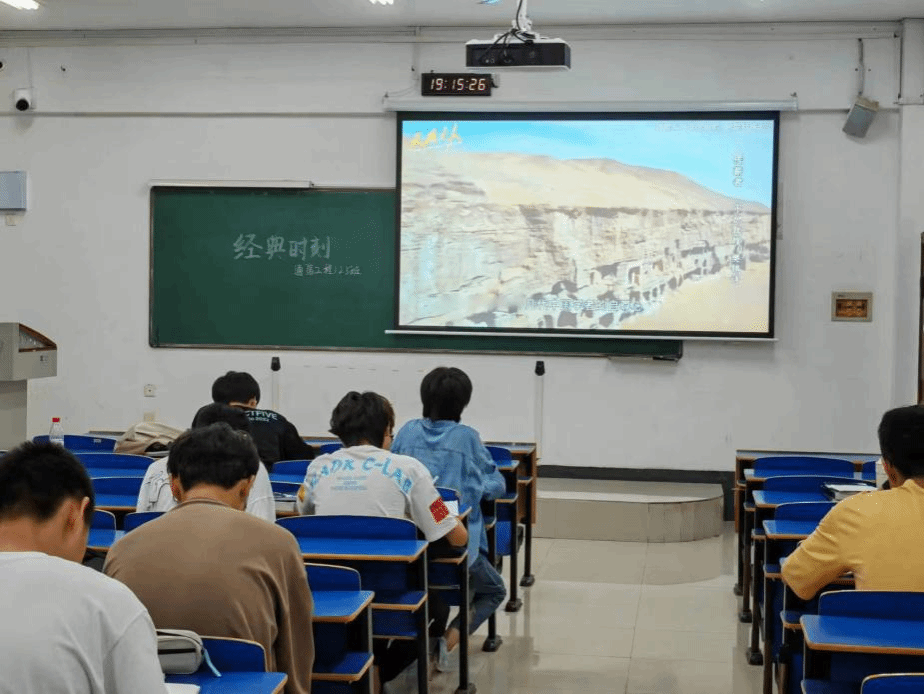 为加强青年思想教育,引导青年学习樊锦诗锲而不舍的敦煌精神,信息公司2023级通信工程1、2、3班于4月25日在逸夫楼415教室开展了第十六次“经典时刻”活动,观看视频《驻守戈壁五十年,只为将敦煌学带回中国》,致敬敦煌女儿——樊锦诗!