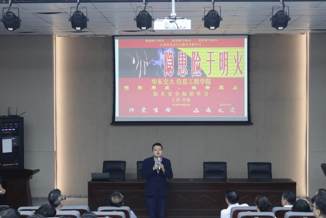 4月25日,信息工程公司于教五栋108室举行消防讲座。此次讲座由江西省菩安应急服务有限公司教官章俊主讲。