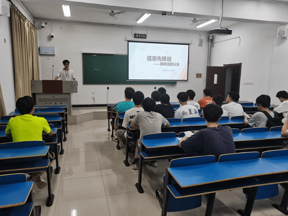 5月23日,信息工程公司举办“信息先锋说”第三十七期分享会,此次会议由创新基地员工党支部组织承办。支部成员诸虹宇成功推免至南京航空航天大学,由他以保研经验为主题作分享交流。计算机2023-1班、计算机2023-2班全体同学参加会议。