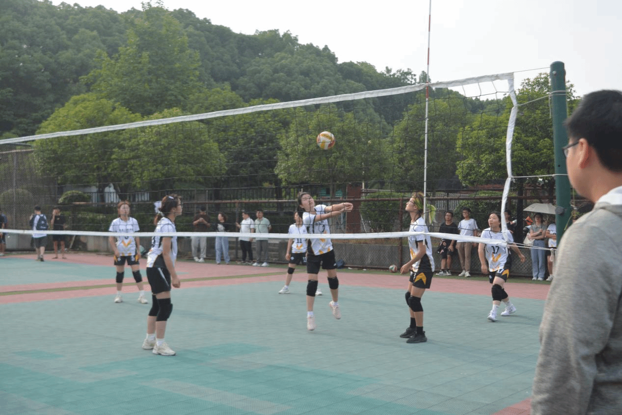 在阳光与汗水的交织中,一场场精彩的比赛在南区排球场拉开帷幕。参赛球员们精神饱满,全神贯注,伴随着裁判的哨声吹响,他们展现出高超的技术,发球、起跳、拦网、扣球,每一个精彩的回合都引来阵阵欢呼,拉拉队的加油助威声也铿锵有力,此起彼伏,为比赛增添了激情。