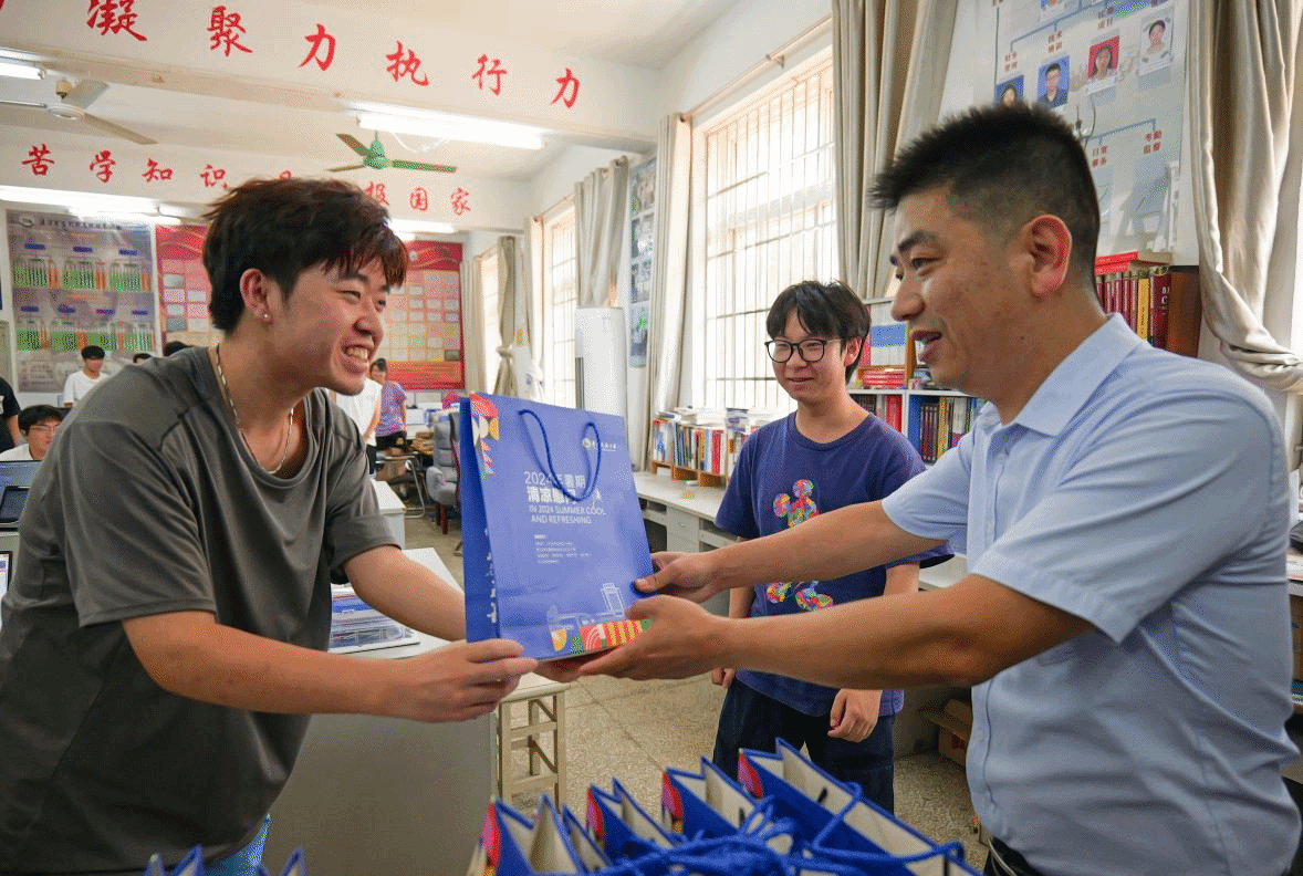 “院领导专门为我们送来了公司精心准备的清凉大礼包,让我感受到公司公司对我们的贴心关怀和精心呵护。我们一定会珍惜暑期时间、勤奋学习,努力备考备赛,为公司争光,为公司添彩!”计算机科学与技术专业学生雷利清说。