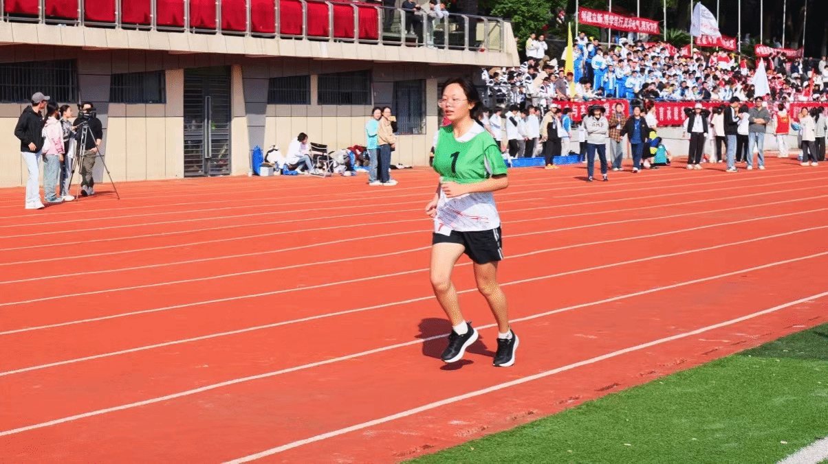 待发令枪声响后,梁晶晶调整好身位,分配好体力,去迎接3000 米的征程,这是一场对她体力与意志的双重考验;徐艺在比赛中始终保持着顽强的斗志,她步伐坚定,眼神专注,不断超越自我。赛道上,她们奋力奔跑的身影成为了一道亮丽的风景线,深深刻在每一位信工学子的心里。