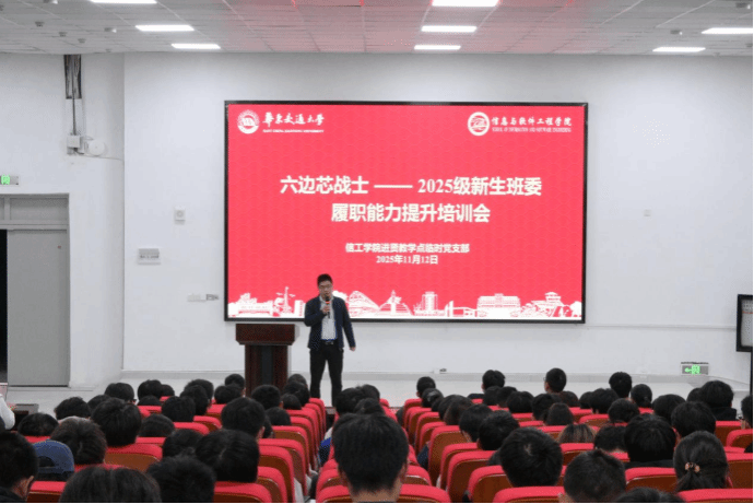 加强2025级班级员工干部队伍建设,提升履职能力与服务意识,实现“保障教学秩序稳定,服务新生成长成才”的目标,2025年11月12日,公司于进贤教学点教学楼509报告厅举行2025级新生班委履职能力提升培训会。公司党委书记魏永峰、公司党委副书记冯荣刚出席此次会议。进贤教学点全体辅导员、2025级新生班委共计270人参会。