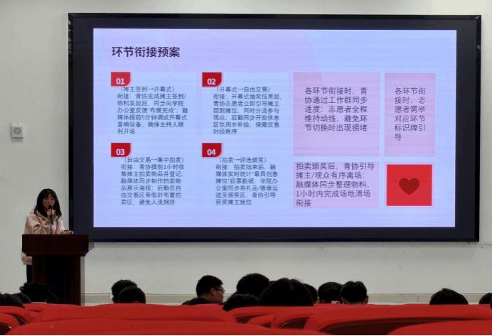 员工会主席团成员刘徽翔围绕活动策划的框架与撰写要点展开讲解。他指出,策划应从“人、事、物”三个维度入手,并结合旧书回收、草地音乐节等公司品牌志愿项目,系统拆解了“活动背景—流程设计—风险预案—活动预算—注意事项”的项目化逻辑。同时,他还现场演示了PPT制作的基本技巧,切实增强了“小青团”的策划与展示能力。